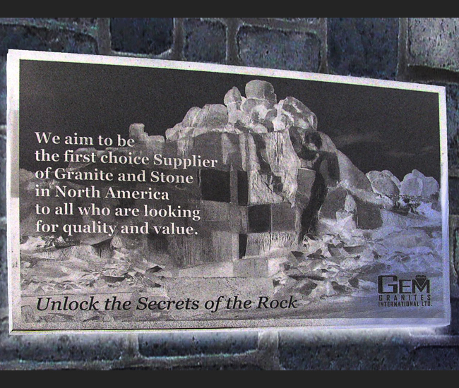 The stones: granite, slate and marble; durable, earthy and full of character. We produce etchings in slab stones or across multiple tiles to create large murals as well as individual plaques.